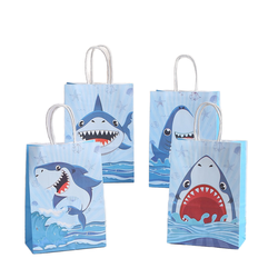 YZ Reciclável Kraft Papel Tubarão-temático Algodão Corda Handle Bags Impressão Flexográfica Digital para Artesanato Presentes Crianças Aniversário