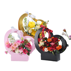 YZ Hollow kalp şekilli el çiçek buketi çanta geri dönüşümlü kaplamalı kağıt özelleştirilebilir sevgililer günü hediye kutusu
